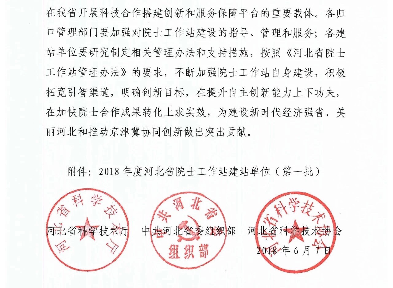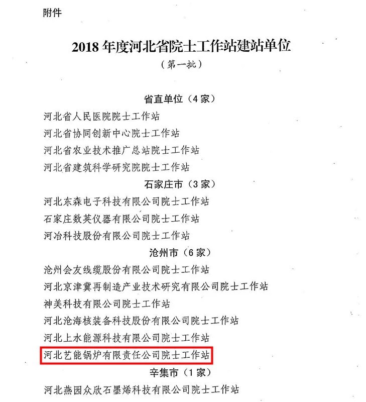 河北省為了推動科技英才“雙百雙千”工程,吸引國內(nèi)外高端智力參與我省經(jīng)濟建設,經(jīng)省科技廳、省委組織部、省科協(xié)一致決定設立院士工作站。2018年僅有14個單位入圍,其中就包括吳橋縣河北藝能鍋爐有限公司。
