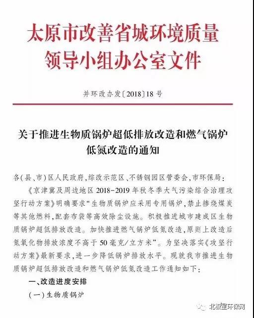 太原:2019年10月底前完成生物質(zhì)鍋爐超低排放改造和燃?xì)忮仩t超低氮改造
